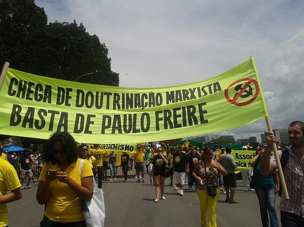 Nesse contexto cabe a indagação: por que algumas figuras públicas defendem um espaço escolar cada vez mais apolítico? Num cenário nacional onde a educação pública já é completamente sucateada, precária e tratada como espaço de depósito e não de direitos para a comunidade escolar, não surpreende a tentativa de cercear ainda mais os educadores em sua prática pedagógica. Uma consulta rápida ao dicionário coloca como sinônimo da palavra “doutrinar” a palavra “adestrar”. Sim, de fato, o que o modelo de educação vigente faz é adestrar jovens, matar a criança que existe em cada um deles para que nasça o aluno – o ser sem luz – e, dessa forma, domesticá-los e anestesia-los frentes suas próprias vidas e a realidade que os cerca.